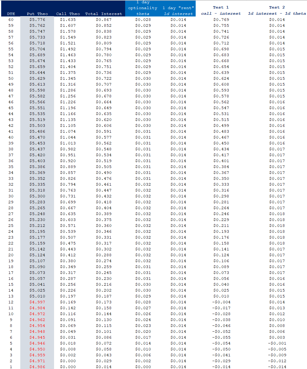 - Test 2: 1 day interest that I forgo vs 1 day optionality represented by theta. This represents the marginal comparison of the interest vs optionality for 1 day.