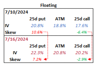Here’s what happened on a fixed strike basis between the 2 vol surfaces from 7/10 to 7/16: