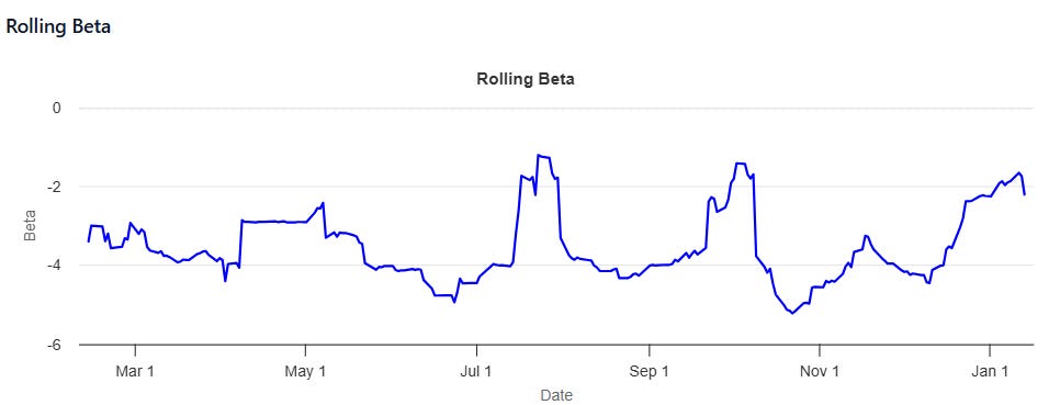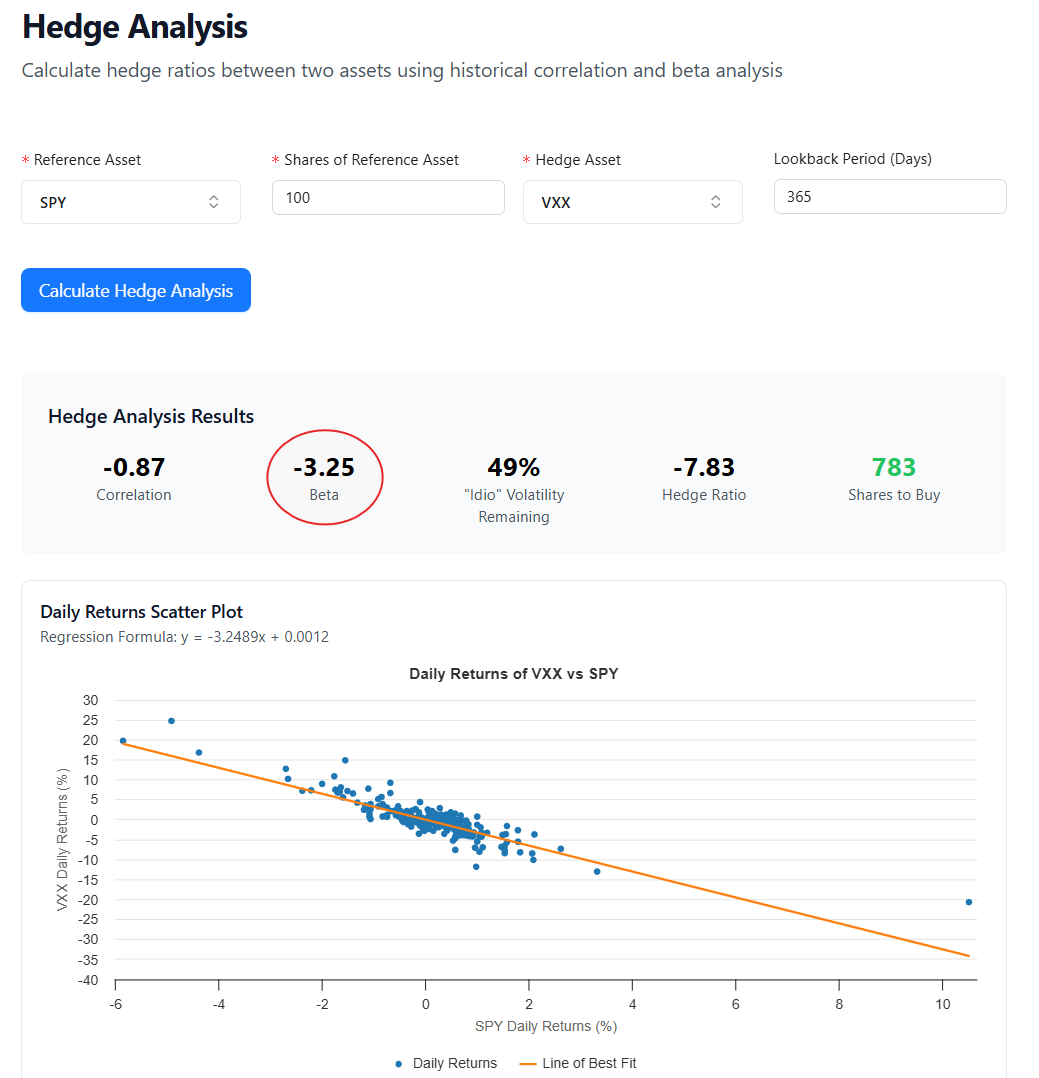 Running the regression for the past year in moontower.ai shows a VXX/SPY beta of -3.25:
