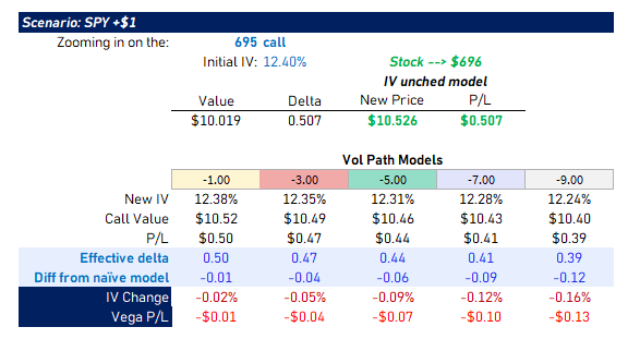 Let’s zoom in on the 695 call in the case when SPY goes up $1.