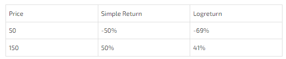 - Log returns are always smaller than simple returns just as compounded returns are lower than simple returns. This makes sense because log returns are just compounding where the interval between compounding is reduced to zero so it takes a lower rate applied more frequently to get to the same total return.